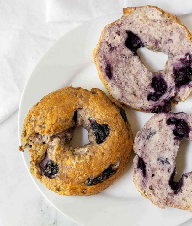 Our sourdough blueberry bagel is perfectly chewy with bursts of sweet blueberries baked into every soft, flavorful bite.